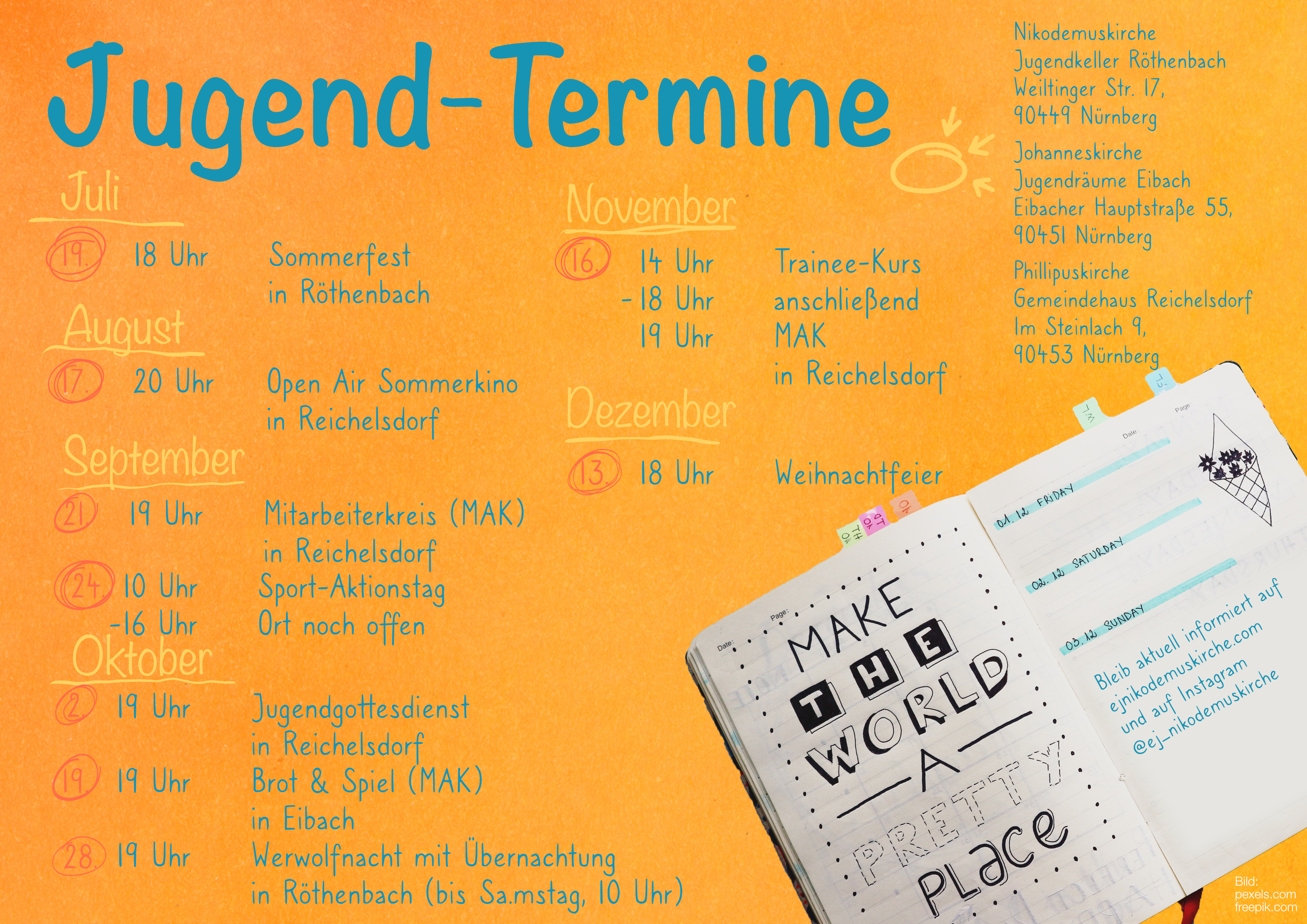 Auch für das Jahr 2023 haben wir uns viele Gedanken gemacht. Es ist ein buntes Programm dabei entstanden! Hier findest du alle Termine für das erste Halbjahr. Sie werden immer weiter mit neuen Informationen ergänzt. Schau doch einfach immer wieder vorbei!